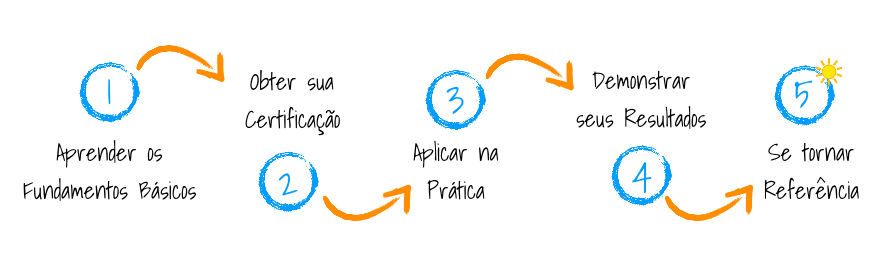 Existem algumas pessoas que tentam pular alguns destes passo, seja somente tirando a certificação, ou somente tentando aplicar na prática sem estudar. O que a gente tem visto é que se pular qualquer uma destas etapas da Jornada de Transformação suas chances de sucesso diminuem muito.